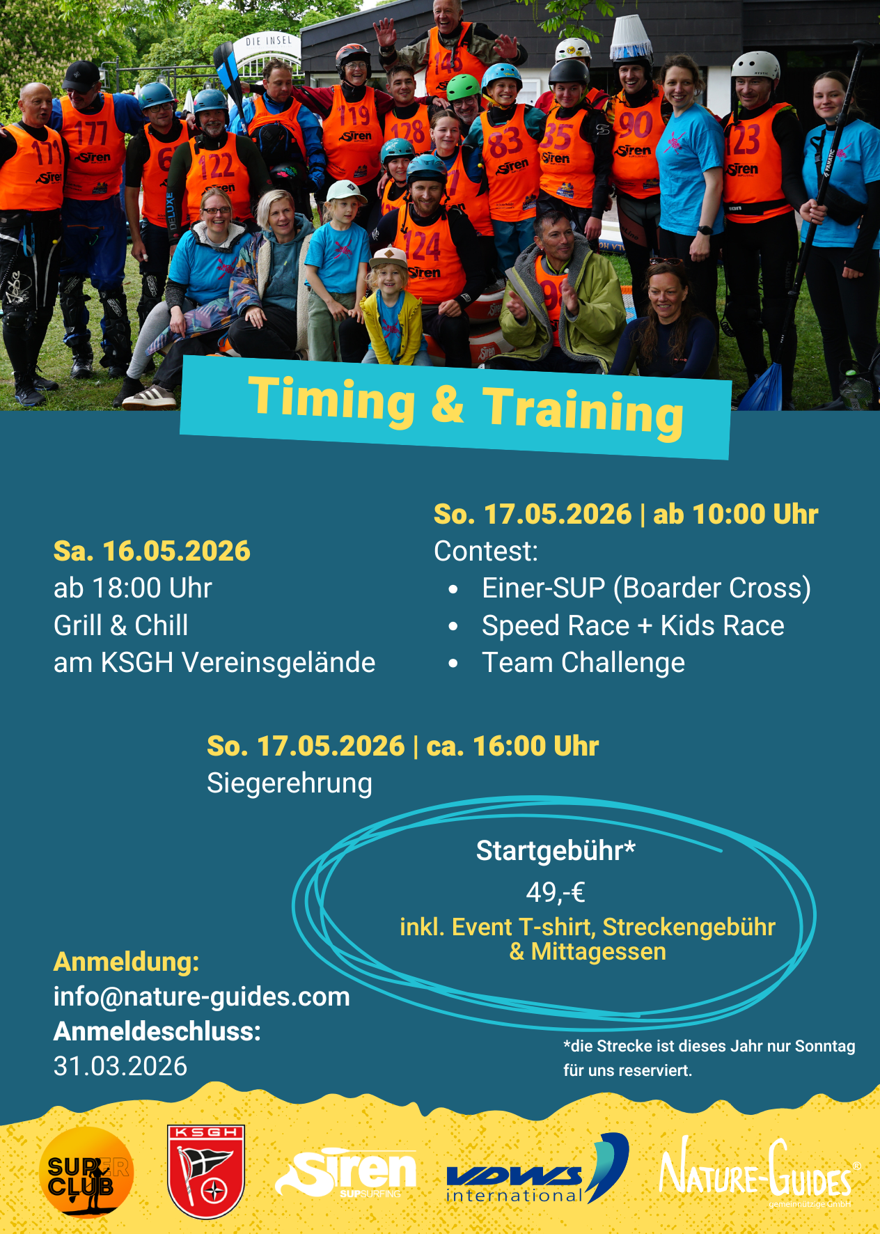 Startgebühr: 49,00€ Wichtig: Dieses Jahr können wir leider nur den Sonntag auf der Strecke sein. |